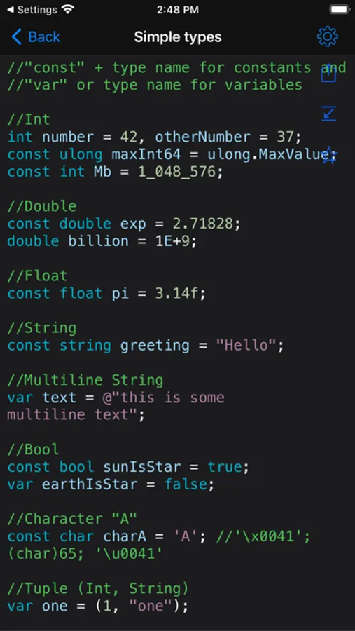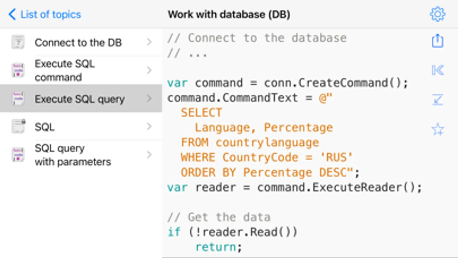 A must have app for any consultant. Rather than being a lexicon of coding descriptions and commands, as so many of these apps are, Fedor has provided a reference tool for real-world developers. There are three main areas of the app; list of topics leading to subject menu, explanation page, settings. Starting with the list of topics, the index is broken into logical sections that direct the developer quickly to a sub-menu and the area needed - precisely where a developer would expect to find what they’re looking for. The explanations in each and every page are succinct, well thought out, and clearly presented with excellent examples where needed. There is no boiler plate generic definitions here. The ‘settings’ section is equally efficient. It allows to switch to dark, change font and size, upgrade/release additional language examples, or simply upgrade to a full and ad-free version. It should be noted that the cost and features of a fully upgraded ‘Codes recipes’ app is the same as buying the ‘Codes recipes PRO’ version. Fedor, thank you for developing this app - it’s excellent.