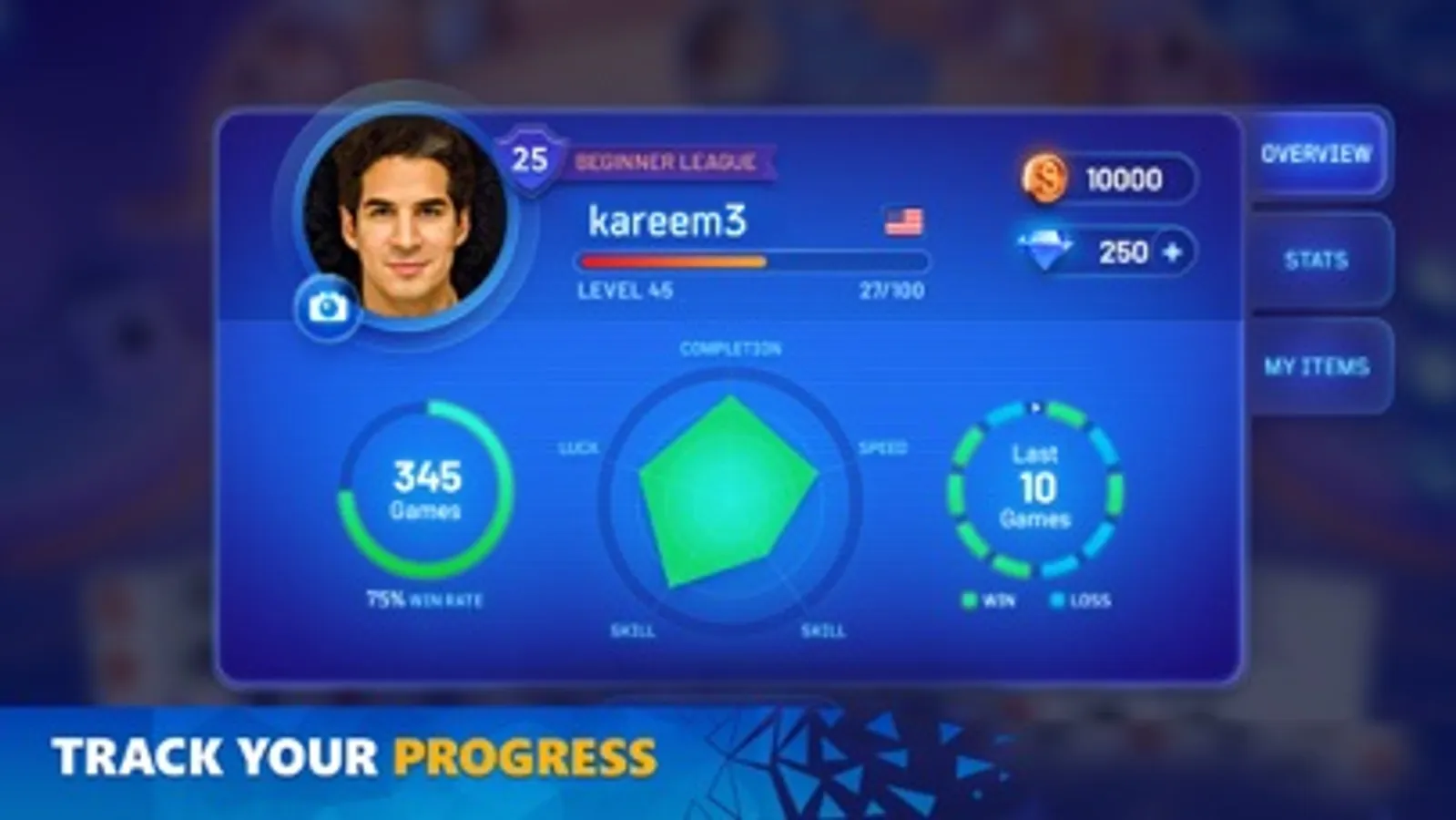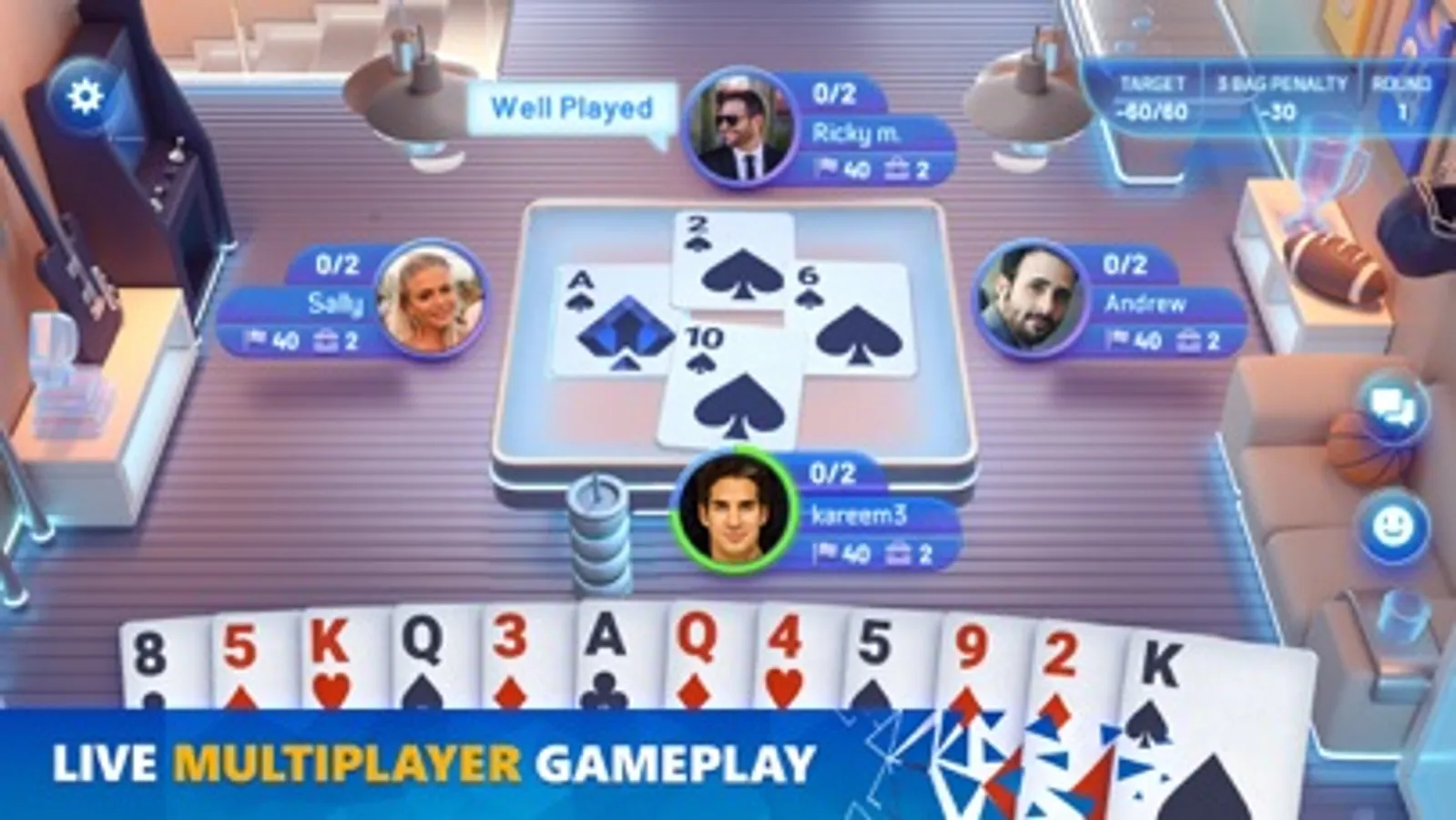 Compare your statistics with other players, earn badges to become a Spades Master or a Spades Royale player.