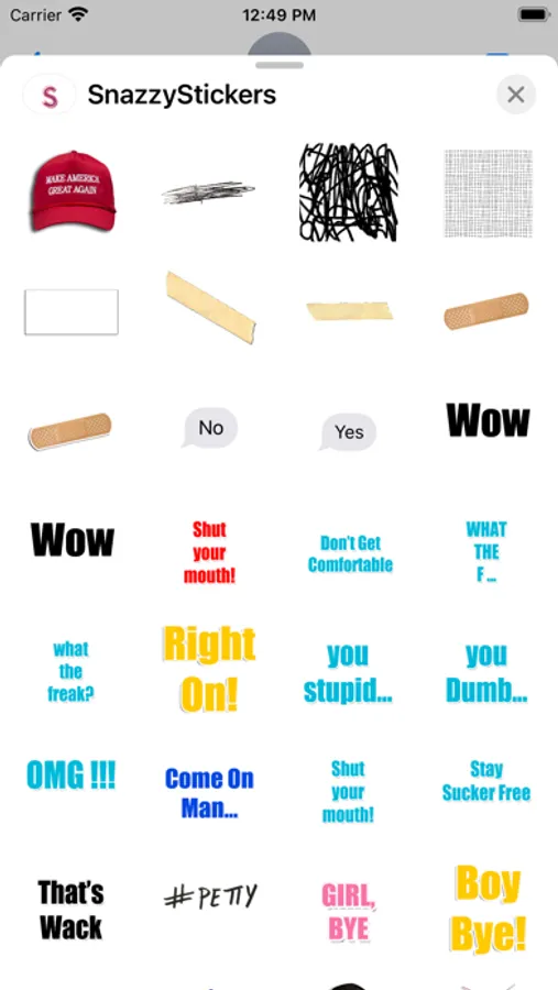 Enjoy over 50 stickers created from Snazzy Snapshot and more.
