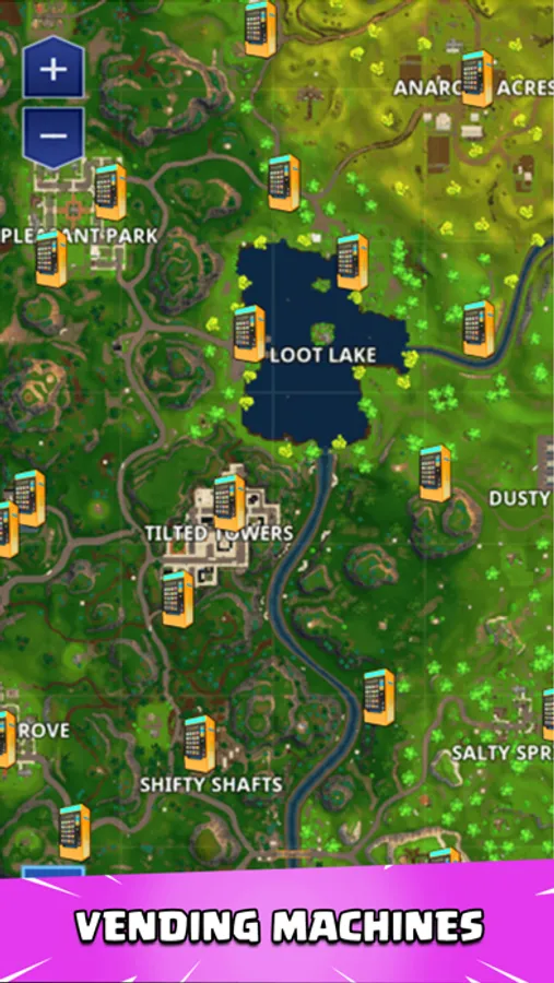 Besides, it contains all spawn locations of the Vending Machines, Golf & Shopping Carts, Rifts/Portals and Chests.