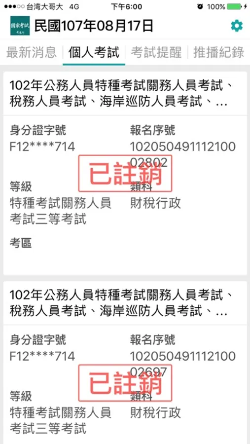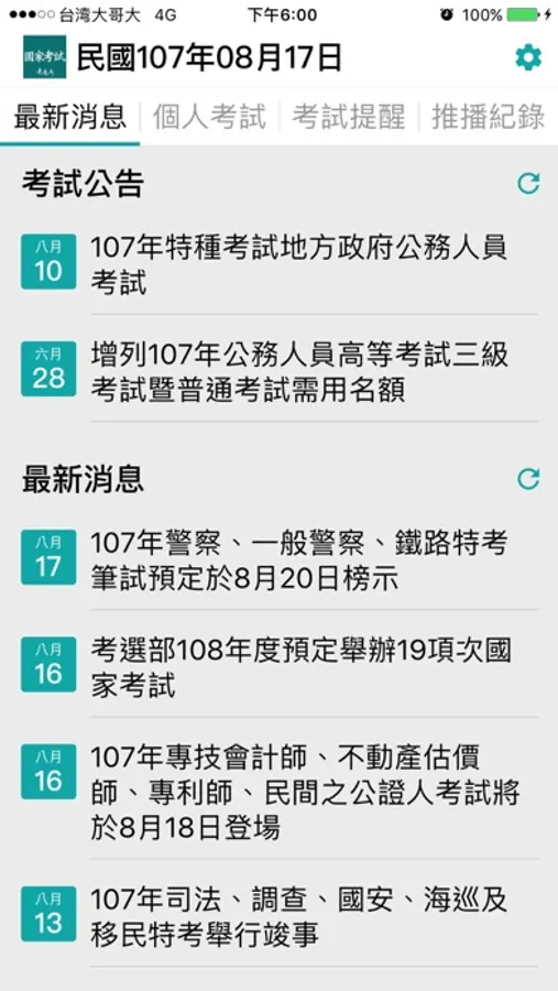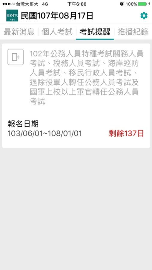 * 提醒推播:報名提醒、考試提醒、榜示提醒等