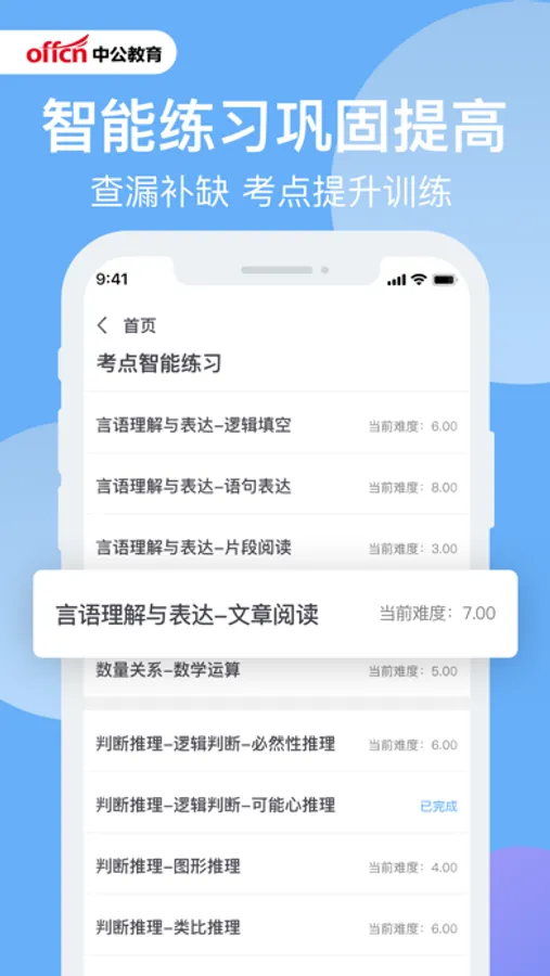 通过中公名师丰富的教学经验积累,贴近命题趋势的教学研发,针对不同考生定制专属练习册,可以细分到知识点的做题练题