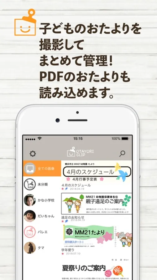 たくさんの「おたより」をスッキリ整理・いつでもチェックできる便利なアプリです