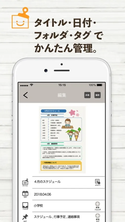 ・PDFファイルの「おたより」も読み込んで保存・管理できます。