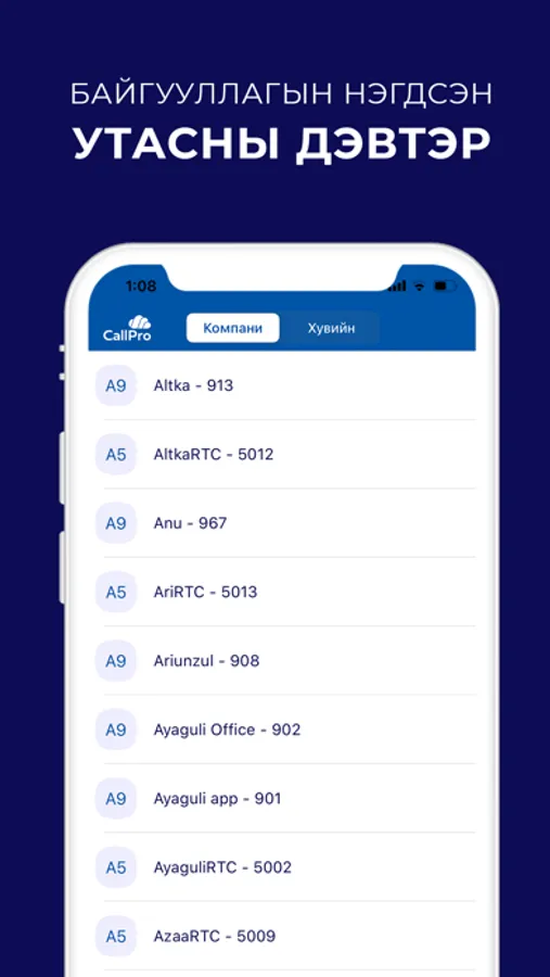 CallPro Mobile - Байгууллагын Дугаарыг Гар Утсандаа