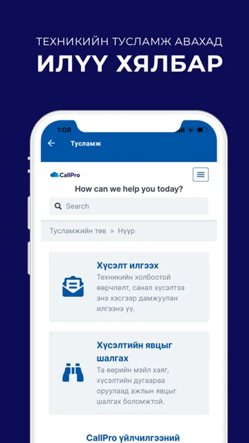 - КоллПро техник дэмжлэг авах нэмэлт цэс