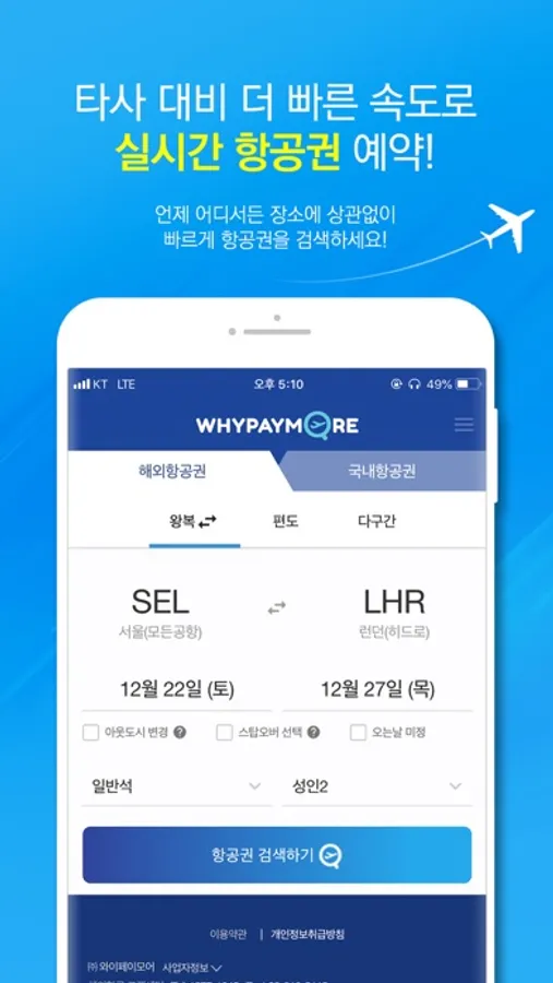 그렇다면 와이페이모어 앱을 다운받아 최저가 항공권을 예약하세요!
