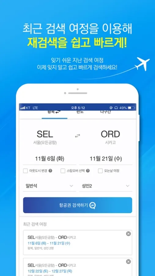 2. 해외/국내 실시간 항공권 최저가로 항공권 예약 가능