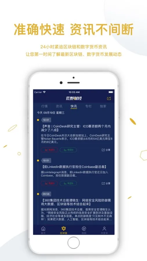 【准确快速,资讯不间断】荒野财经设立“资讯、快讯”版块,24小时紧追区块链和数字货币资讯,让您第一时间了解最新区块链、数字货币发展动态。