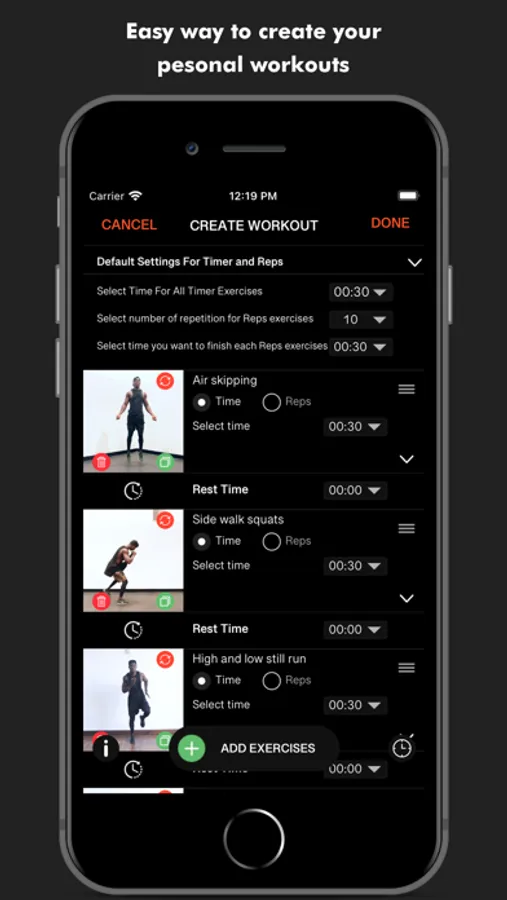 • Choose from over 200 workouts for cardio, abs, back, chest, arms, legs, and more. You can also customize any workout or create your own from scratch.