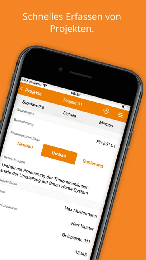 Mit Hilfe dieser App erfassen Sie als z.B. Elektriker direkt vor Ort bei Ihren Kunden die zur Planung der Elektroinstallation benötigten Informationen.