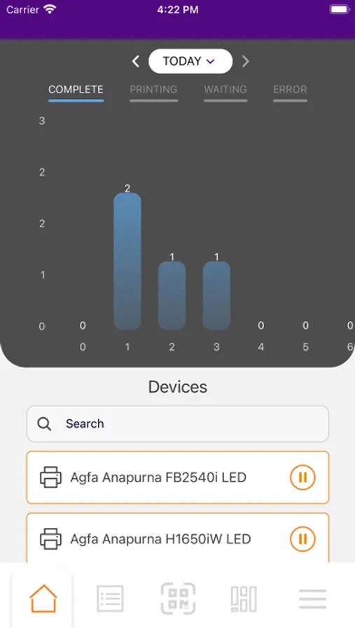 Ideal when roaming the production floor. Just scan the QR code on your printer to see what job is running and what today performance is.