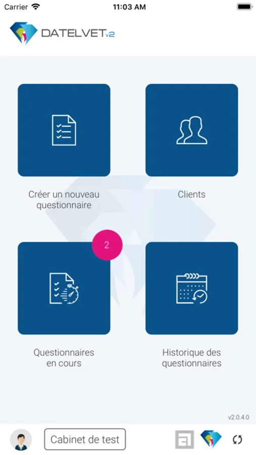 L’application DatelvetV2 a pour but de permettre aux vétérinaires du Réseau Cristal la saisie de formulaires en élevage, dans le cadre de l’exercice de leur profession. L’application étant liée aux logiciels métiers du Réseau Cristal, la saisie des formulaires est facilitée.