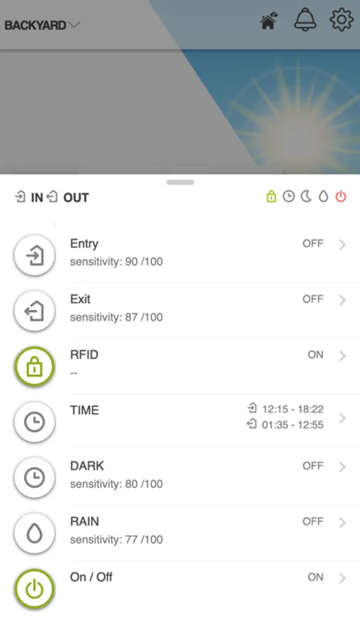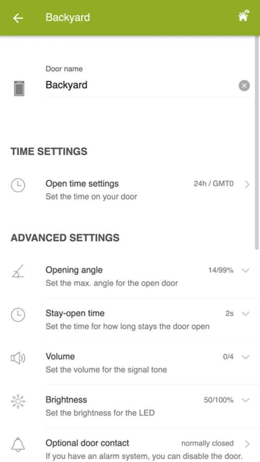Opening, closing and all the settings are just a tap away. Configurable alerts keep informed about all important events and a timeline informs about what was going on during the day.