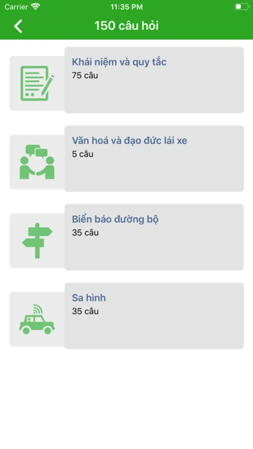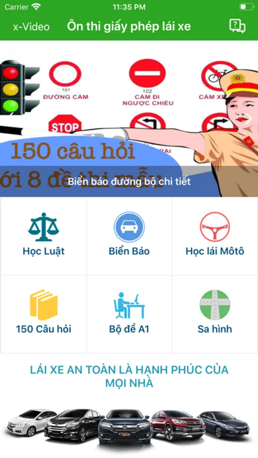 * Ứng dụng gồm 150 câu hỏi dùng để ôn tập GPLX hạng A1