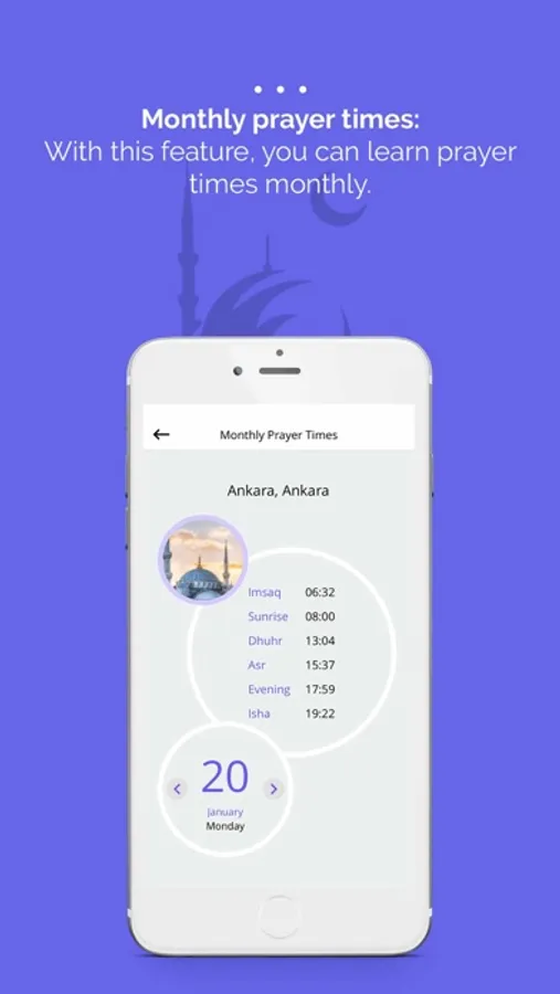 Monthly prayer times: With this feature, you can learn prayer times monthly.