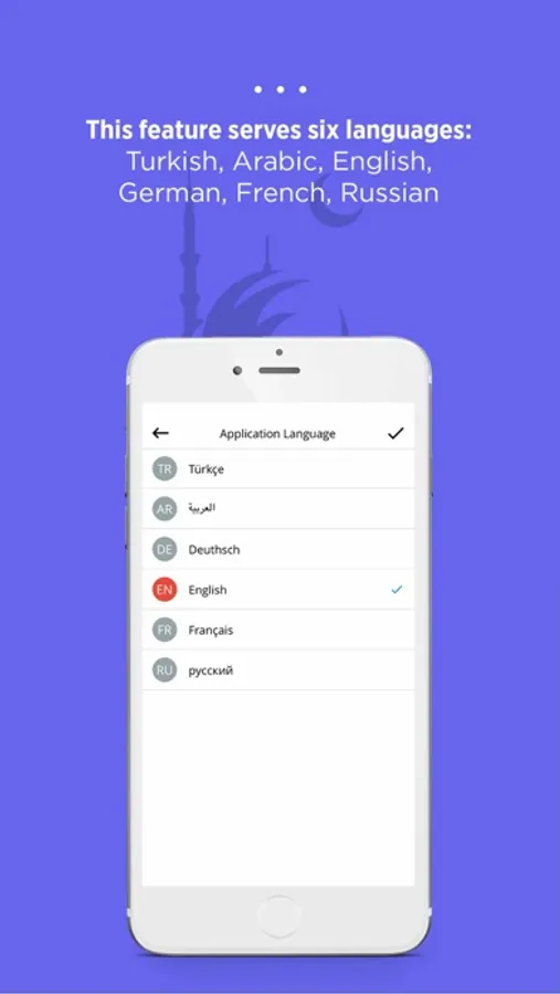 This feature serves six languages: Turkish, English, Russian, Arabic, German, French