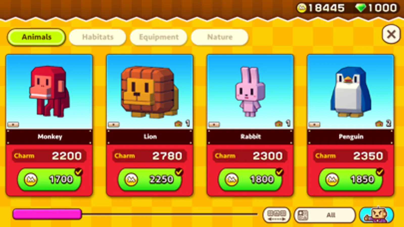 You can upgrade the animals you’ve collected, too. Increase their Charm and turn them into cosplay animals!