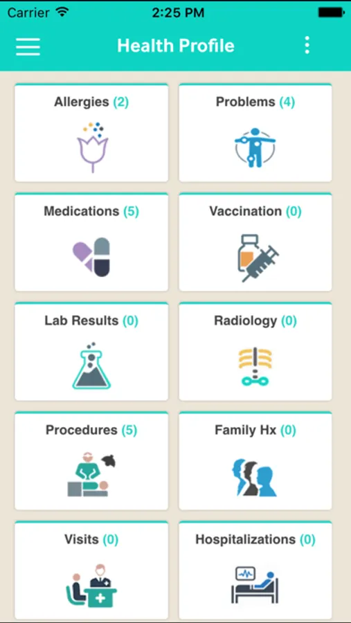 • Access and update your personal health history including personal details and special needs, contacts, allergies, problems, procedures, medications, immunizations, lab tests, appointments, and multi-media content – including images, audio, video, documents
