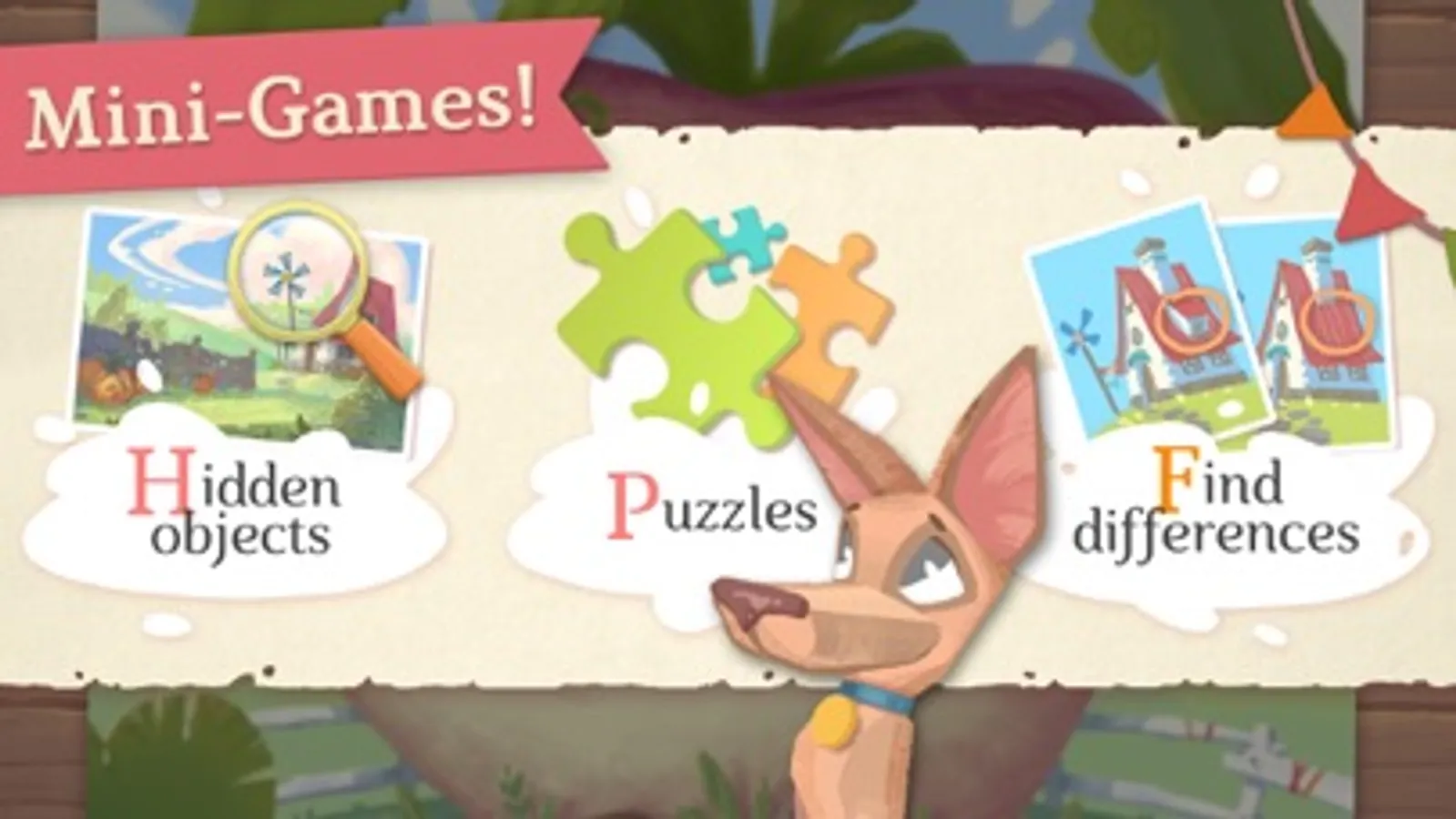 • 4 child-friendly mini-games (Hidden object, Jigsaw puzzle, Spot the difference and Match Pairs)
