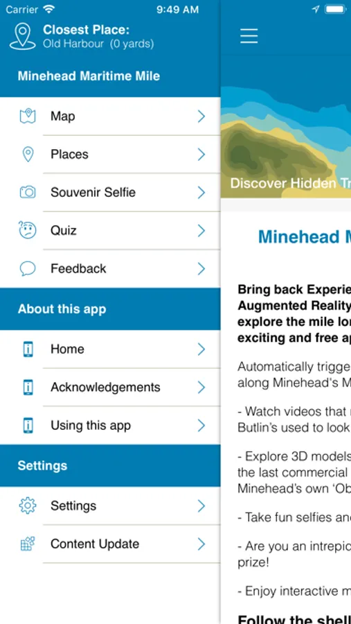 Experience a bygone era with Augmented Reality and archive videos as you explore the mile long Minehead Seafront, using this exciting and free app. Automatically trigger multimedia content as you walk along Minehead's Maritime Mile Heritage Trail: