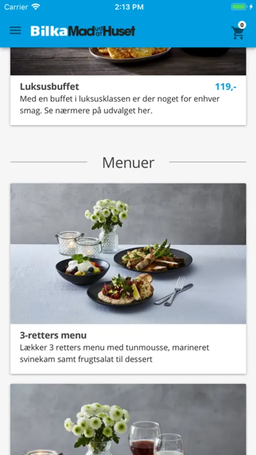 Bilka Mad ud af huset app’en gør det nemt at bestille mad til din fest. Bilka har et bredt udvalg af festmenuer, buffeter, tapas, smørrebrød og festkager. Alt sammen til en skarp kuvertpris. Bestil senest fire dage før festen og hent maden i din Bilka på festdagen.