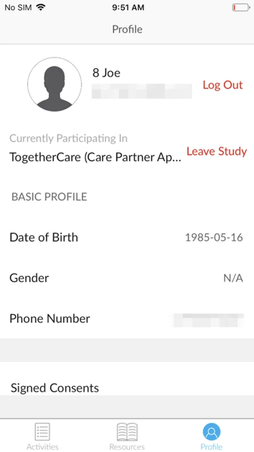The TOGETHERCare™ app is a tool for a clinical trial participant's primary informal caregiver. Informal caregivers are vital sources of safety information and heavily influence whether patients remain in clinical trials. These informal caregivers are a wealth of information regarding symptom development which can ultimately lead to adverse events and trial drop out. The TOGETHERCare™ app provides resources for the clinical trial participant's primary informal caregiver, as well as collects data from informal caregiver to inform the conduct of the clinical trial.