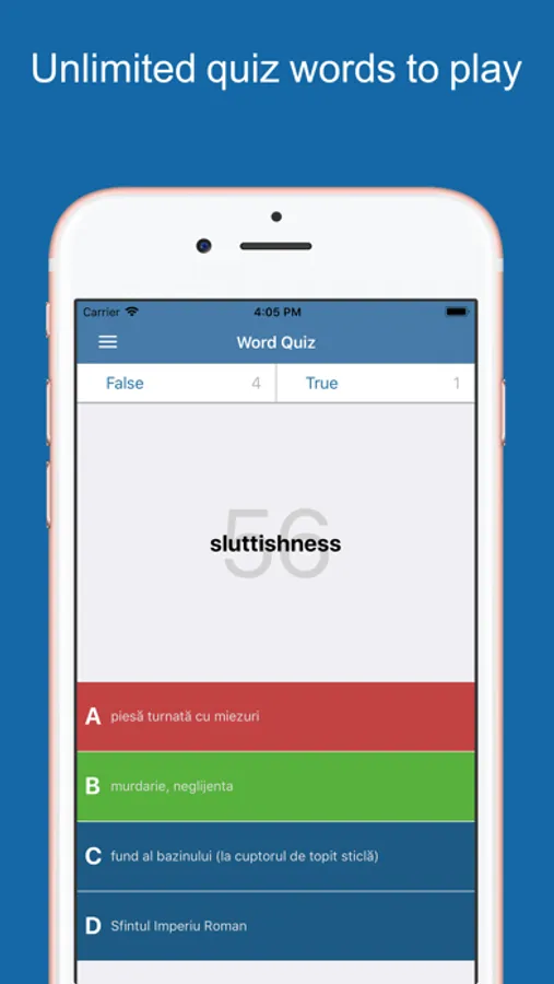 - We developed a new quiz inside Romanian dictionary! To take the quiz, you can easily tap the option icon in the top left side of the screen and choose quiz. Now, you will see a word in the screen with 4 answers, you will have to tap the answer that you think its right to see if it’s the good choice or not. Keep in mind, that there is a countdown timer and if it finishes without a reply from you, then the quiz will ends.