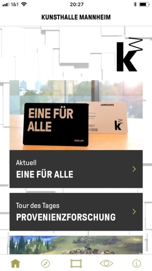Die KuMa-App ist Ihr multimedialer Guide durch die Kunsthalle Mannheim. Mit der App wissen Sie immer, welche Ausstellungen laufen und welche Werke der Sammlung des Hauses ausgestellt werden. Sie können sich über aktuelle Veranstaltungen informieren und erhalten kostenfreien Zugriff auf Hintergrundinformationen sowie sämtliche Audioguides der Ausstellungen und Sammlungsbereiche.