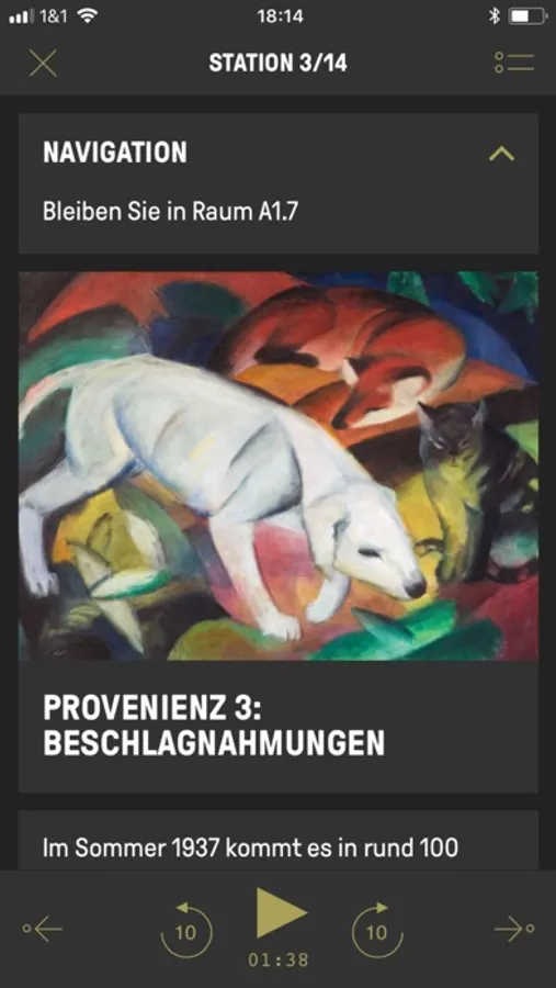 Um den Guide nutzen zu können, benötigen Sie eine Internetverbindung. Im Museum steht Ihnen kostenfreies WLAN zur Verfügung.