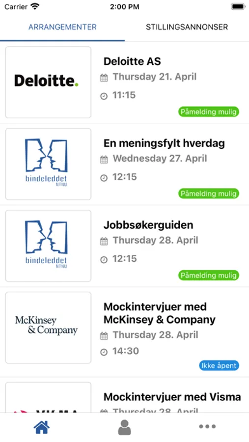 Bindeleddet-appen lar deg melde deg på bedriftspresentasjoner på en rask og enkel måte. Ved å trykke på QR-symbolet øverst til høyre kan du scanne deg inn på våre arrangementer i stedet for å skrive inn brukernavn.