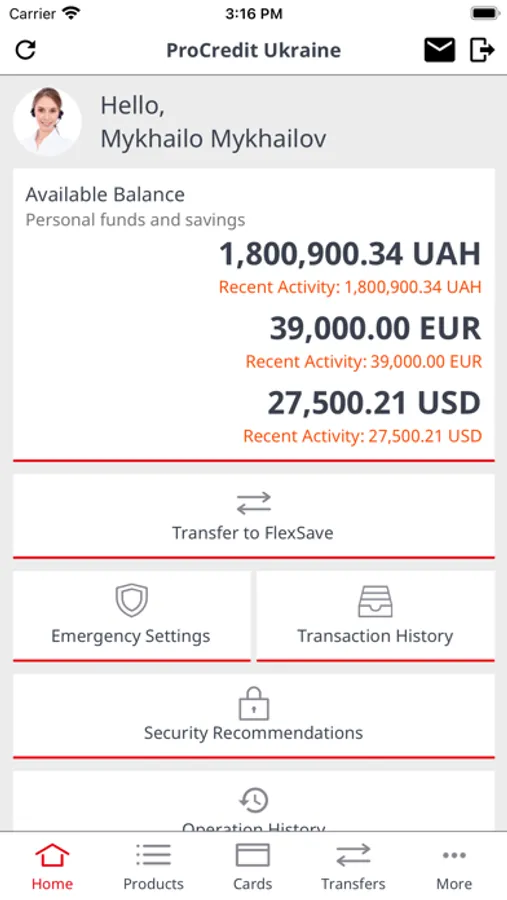* 24/7 transfers between your own accounts, other accounts within the bank, in Ukraine and card to card