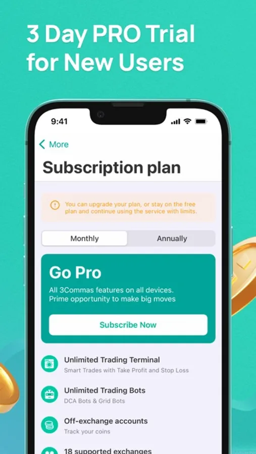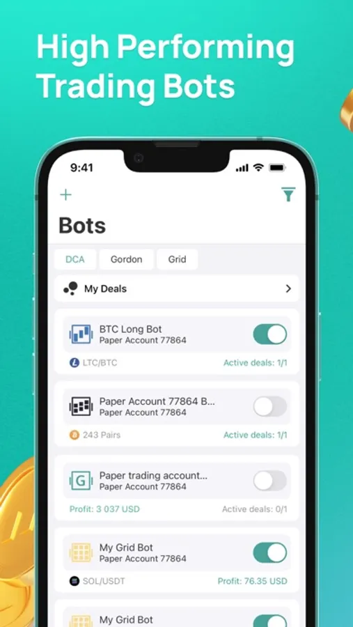 Orchestrate all your moves with tokens across many exchanges from a simple, central interface that gives you real-time updates on performance. There’s no other crypto app or exchange terminal that offers the features 3Commas does.