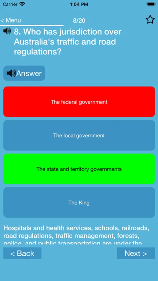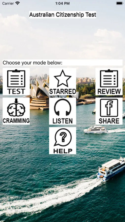 -REVIEW mode - this mode will test your Australian citizenship knowledge with all the questions in the bank.