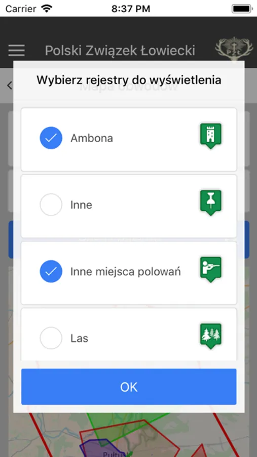 - obejrzeć mapę obwodu łowieckiego wraz z rewirami polowań i urządzeniami łowieckimi,