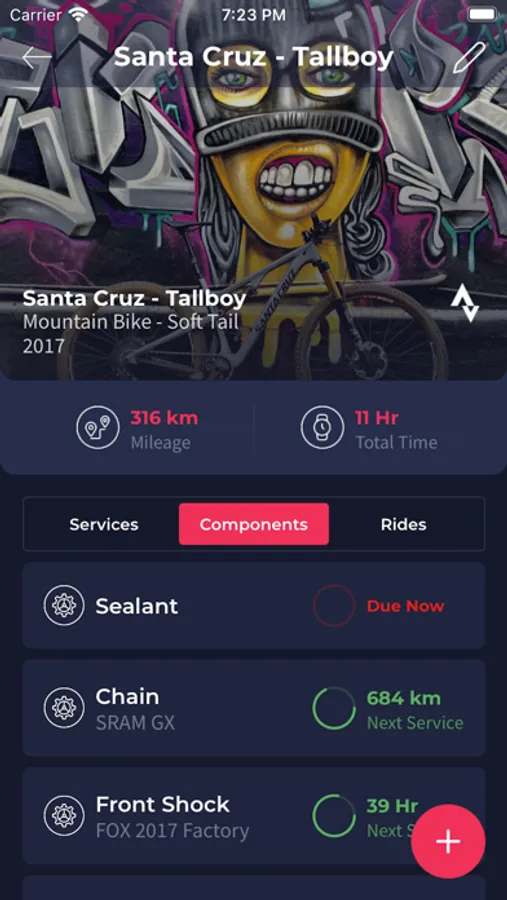 Track the mileage of every component on your bike so you know exactly when it needs to be serviced or replaced.