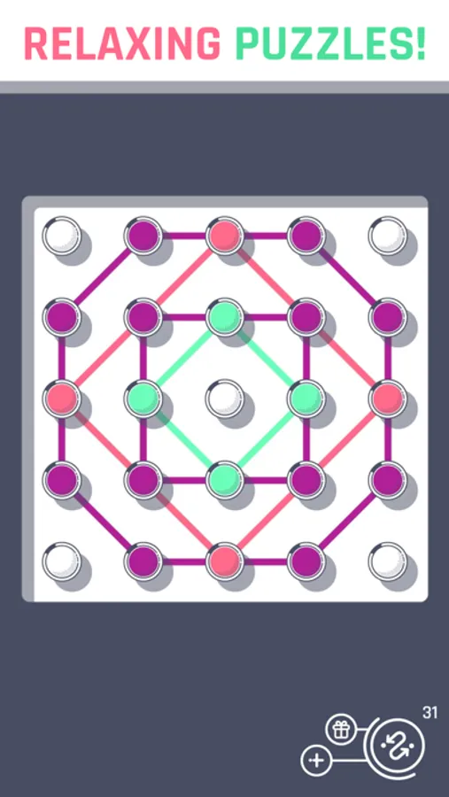 Dotcraft. is a minimal color-based combination puzzle game. To solve the puzzles, move the dots by sliding your finger in different directions to line up with the matching slots. Create hand-crafted shapes in each level. Those who can't find the right path to match the dots with the correct slots, please enjoy the Swap Option! You can easily change the place of two dots.