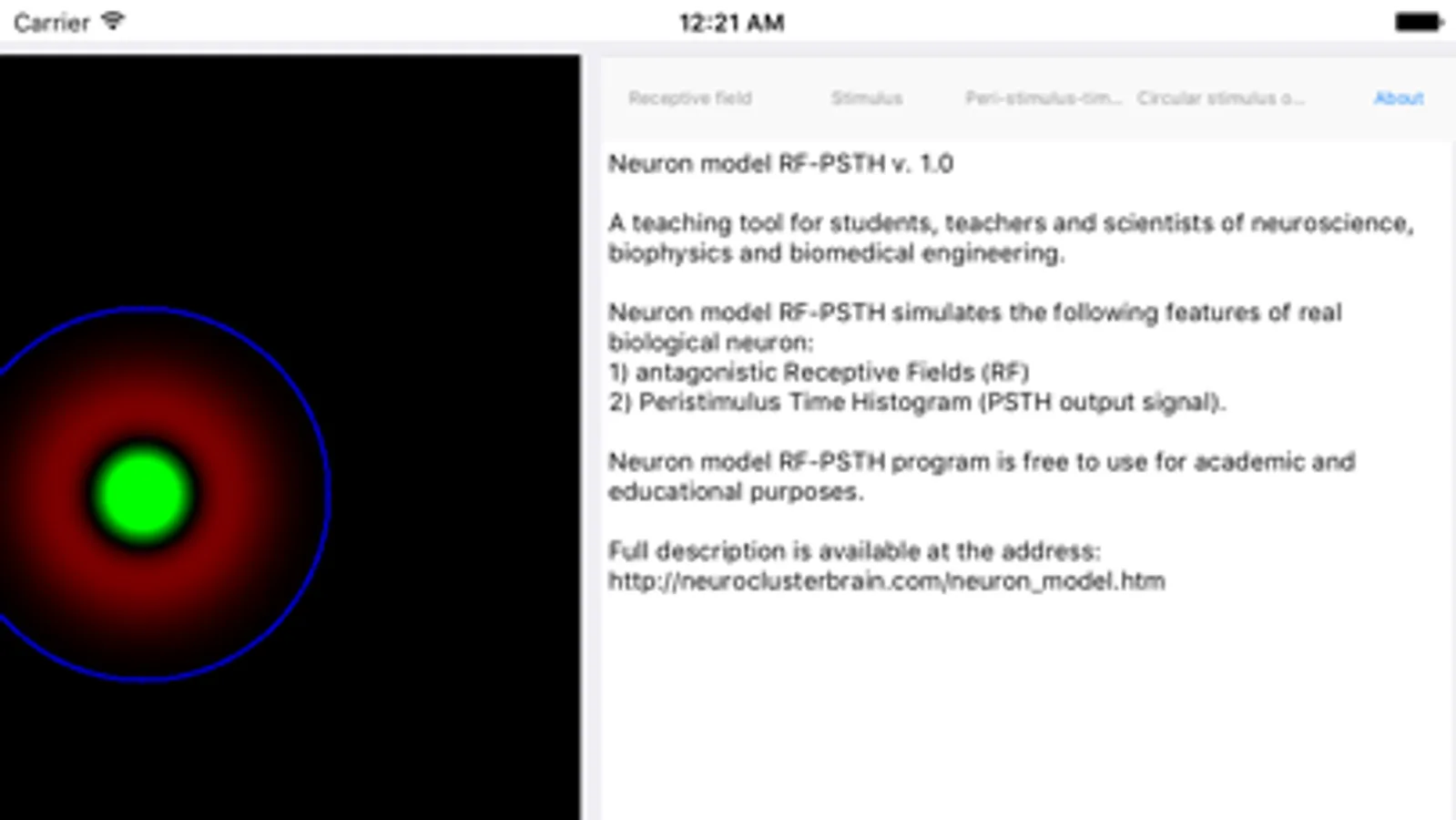 Note: "Neuron model RF-PSTH" program needs big screen. Please use the iPad instead of iPhone.