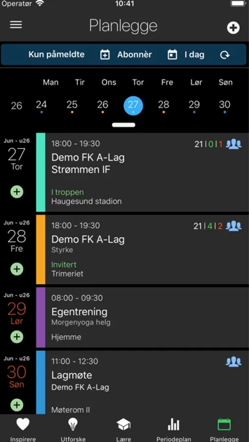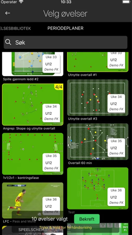 - Automatisk innlegging av treningsinnhold basert på kvalitetssikrede periodeplaner med foreslåtte økter, for lag (lagøkter) og spiller (egentreninger)