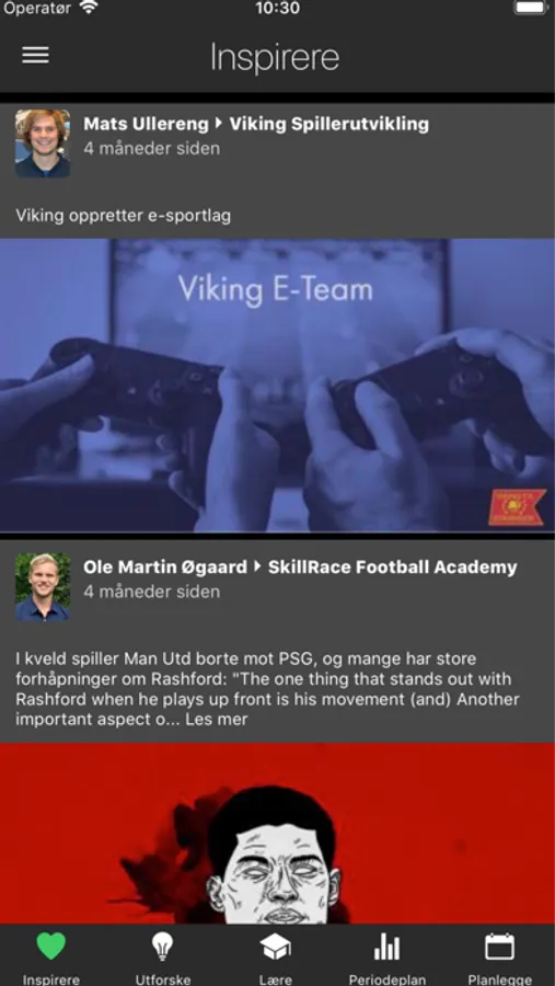 - Vegg med nyheter fra den norske fotballfagekspertisen, egen klubb og lag