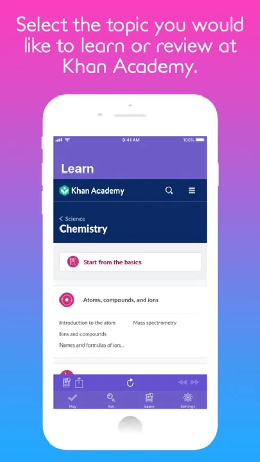 • Learn or review a wide variety of chemistry topics, thanks to Khan Academy.