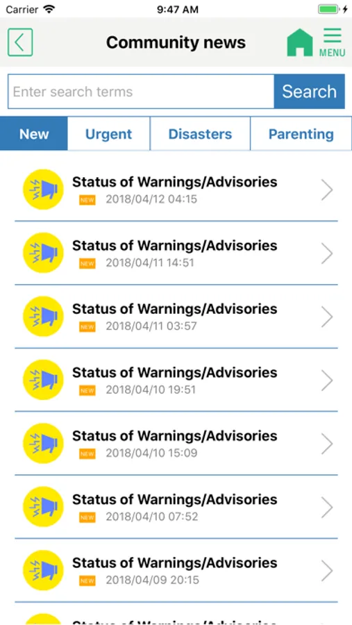 Local news/announcements in 10 categories listed below.