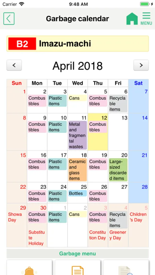 ・Garbage calendar