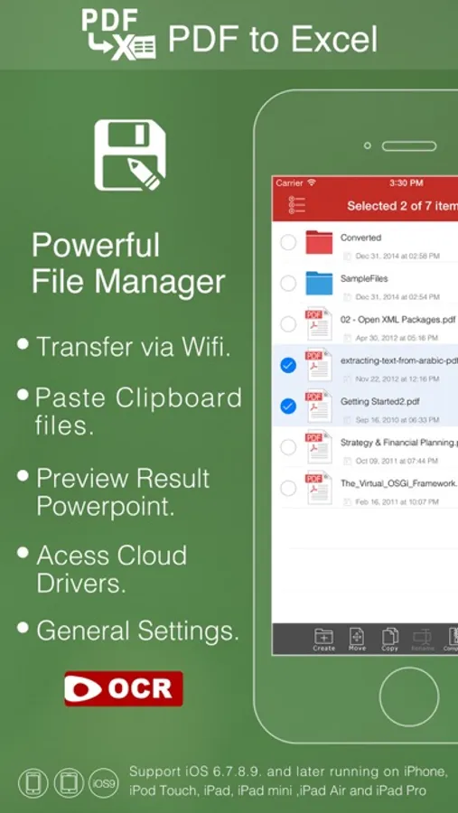 • Support Microsoft Office 2007, 2008, 2011 and 2016 Excel Application, not completely compatible with iWorks apps.