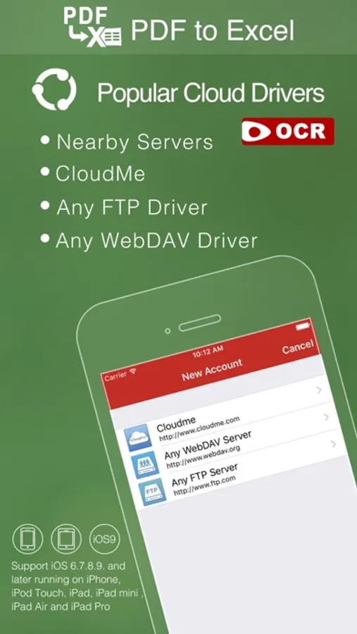 • Connect to online cloud storage support, include any FTP or WebDAV Server.