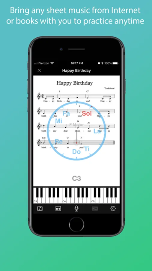 Do you want to read and sing music at first sight? Do you want to improve your pitch accuracy and practice solfege any time? If yes, this app is your perfect assistant. As you sing, it can track your pitch and display the solfege syllable (Do, Re, Mi, …) and also the note name (C, D, E, …) in real time. The instant feedback can help you correct yourself when you sing out of tune. When you are training your singing, you are also training your ears, because sight-singing and ear training go hand in hand. This is the smartest, most motivating and especially most efficient way to become a better musician.