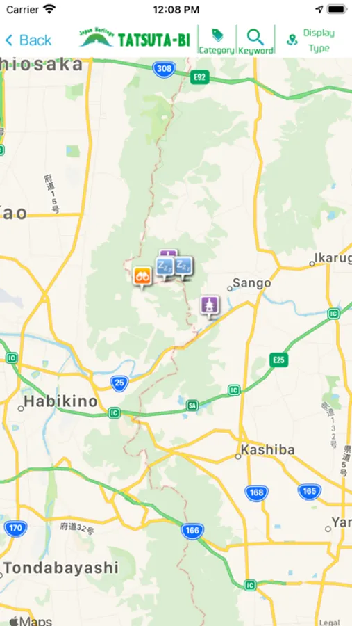 ● Helps you navigate the walking course around the Japanese heritage "Tatsuta Kodo Kamenose" using GPS.