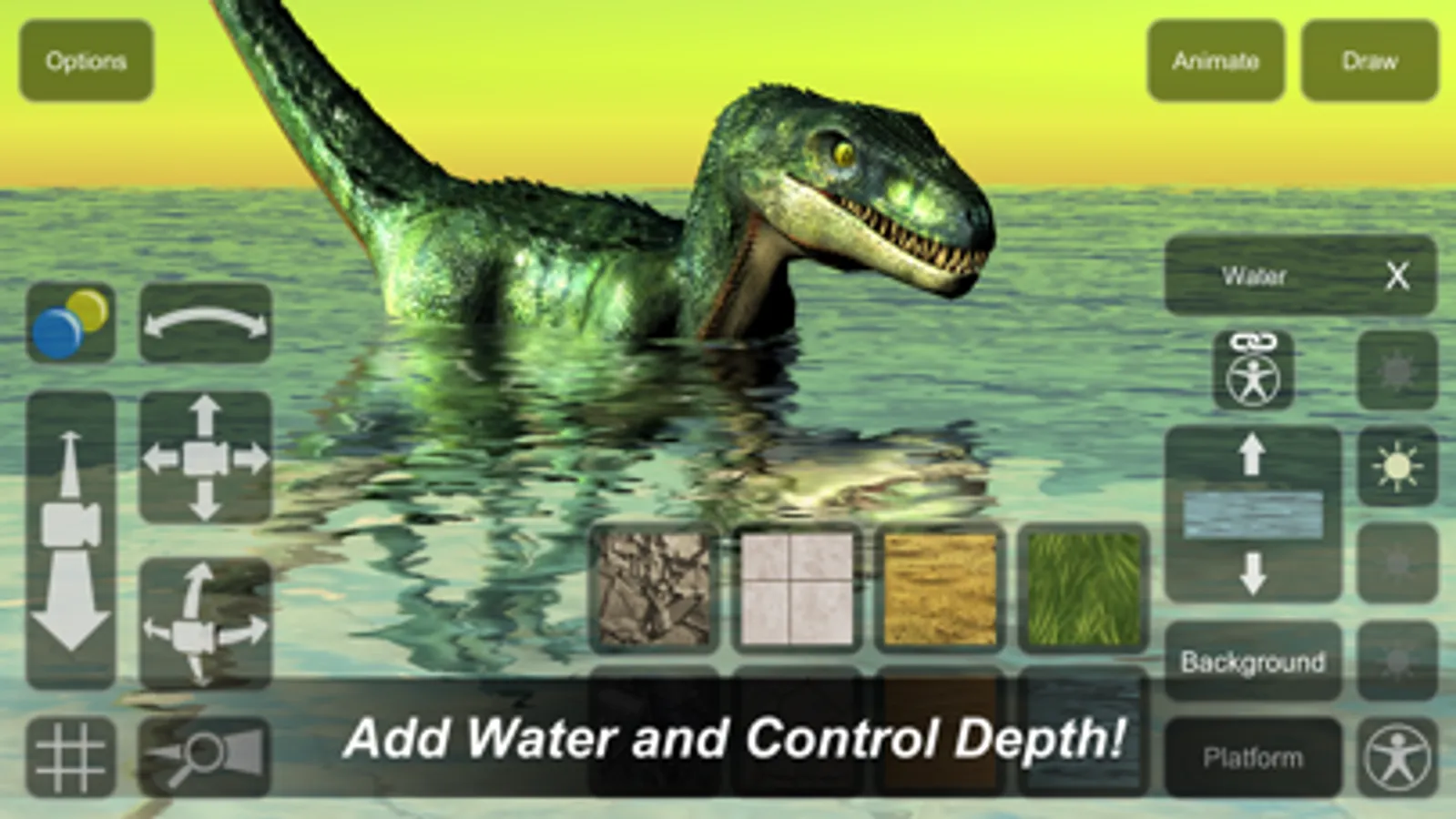 - Add water to the scene and control depth.