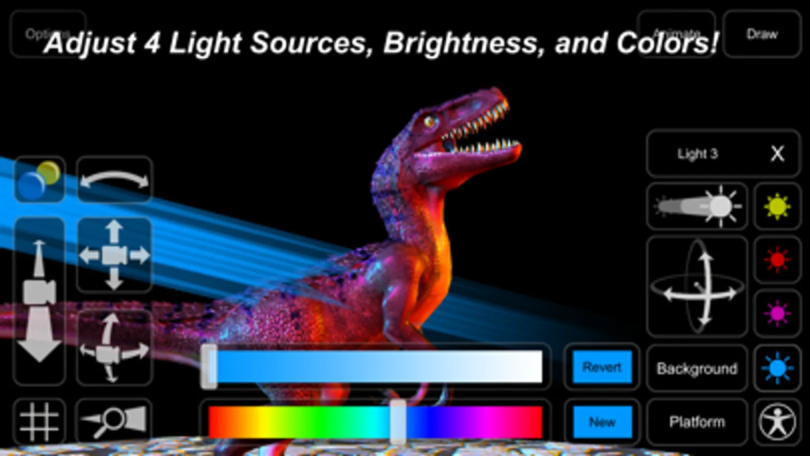 - Adjust 4 lights including color, angle, and brightness of each.