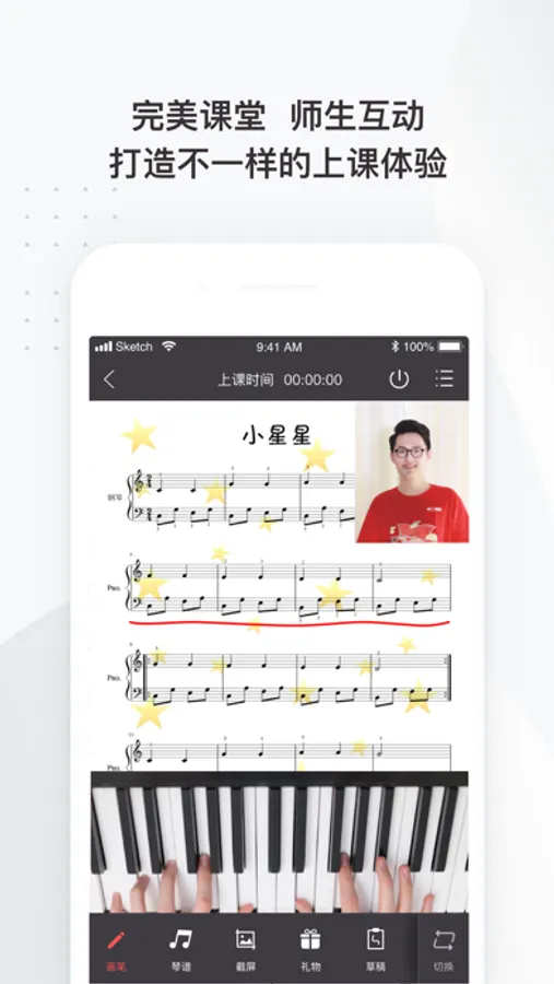 课堂实时互动。师生实时语音+视频,通过掌门钢琴陪练老师端以远程辅导的方式进行钢琴陪练课程教学。